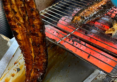 当店の鰻の蒲焼(うな重含む)は直火焼うなぎで、一切蒸さない「関西風」の調理法です。